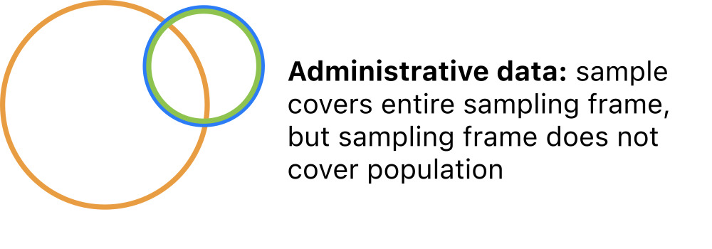 Also common is administrative data in which all units are selected from a convenient frame that partly covers the population.