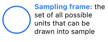 For this reason, it is useful to introduce the concept of a sampling frame, which refers to the collection of all units in a population that can be observed for a study. For example:
