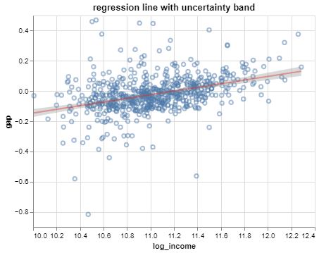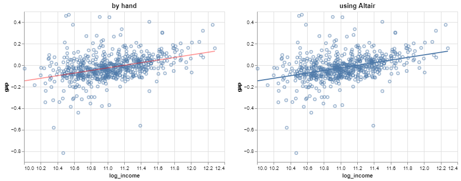 Verifying that the line plotted on a prediction grid (left) matches the regression transform from Altair (right):