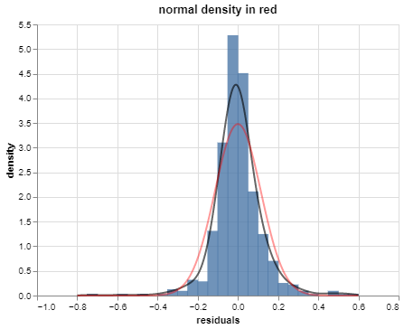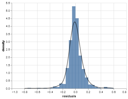 The residual distribution is pretty well-approximated by the normal or Gaussian distribution: